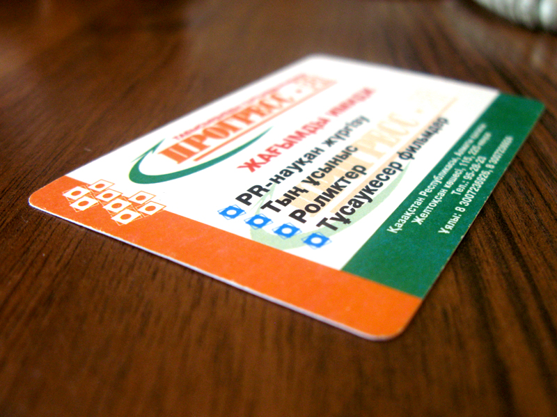 Цены: Стоимость цветных односторонних визиток тиражом от 50 до 100 шт.=16 тг. за 1 шт. Стоимость цветных двухсторонних визиток тиражом от 50 до 100 шт.=20 тг. за 1 шт. Если тираж выше, то и цена ниже. Если визитка черно-белая, то стоимость визитки уменьшается на 30 % тг.